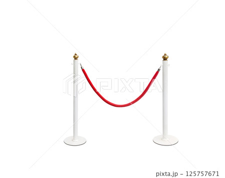 Red velvet rope fence, VIP zone, no event, separated on white background.