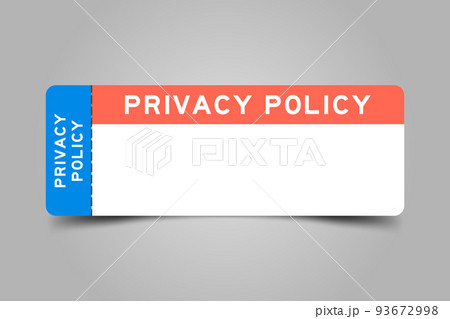 Blue and orange color ticket with word privacy policy and white copy psace on gray background