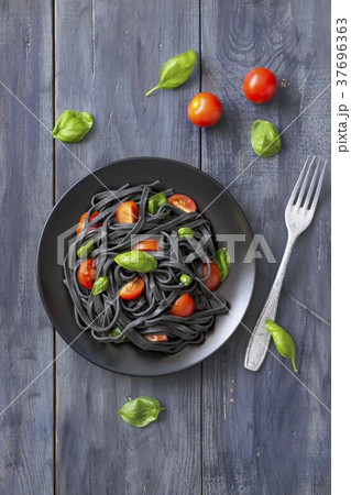 イカスミ パスタ 俯瞰 Pasta squid ink