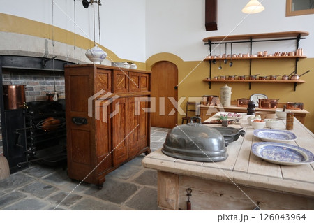 ウェールズ、セント・ファガンズ歴史村、城のキッチン
