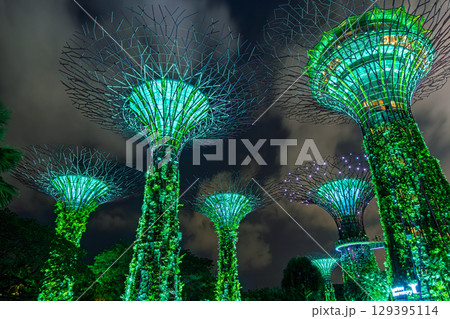 シンガポールの観光地の夜のガーデンズ・バイ・ザ・ベイ