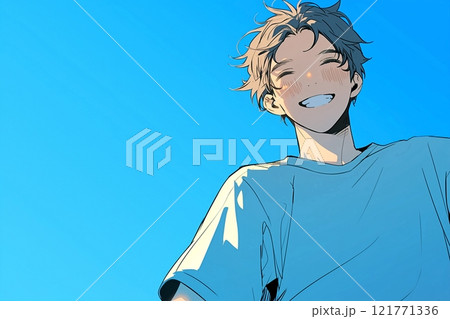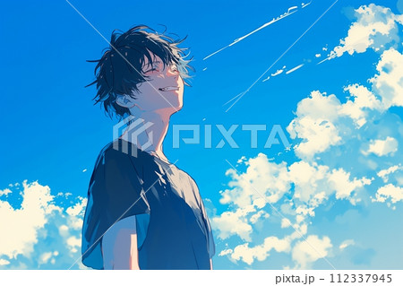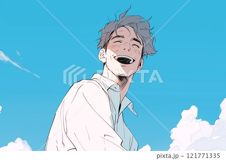 青空の下・さわやかな笑顔の男性「AI生成画像」