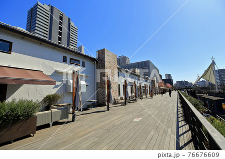 天王洲アイル 新たにおしゃれに開発された寺田倉庫エリア 水辺のカフェ・ウッドデッキ/ボードウォーク