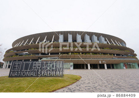 新国立競技場 国立競技場 風景 日本 東京 オリンピック スタジアム 快晴 青空 アップ 完成 竣工
