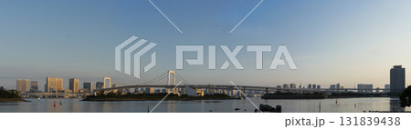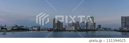2020年の晴海埠頭から見た東京湾、夕暮れの芝浦東京湾岸