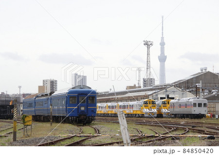 尾久客車区に留置中のブルートレイン客車(2021年)