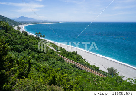 台湾の南廻線の太麻里の絶景 海沿いの線路