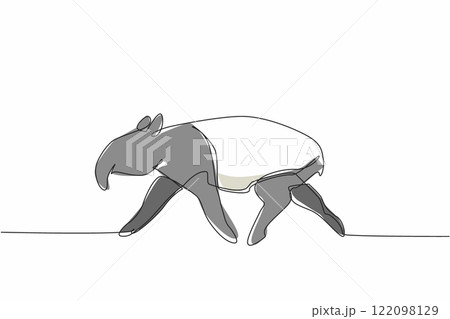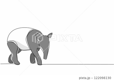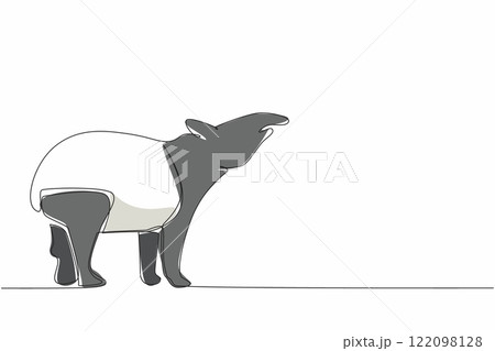 Single one line drawing tapir pose. The characteristic of this animal is that it has a unique nose. This animal is almost extinct. Tapirus. World Tapir Day. Continuous line design graphic illustration