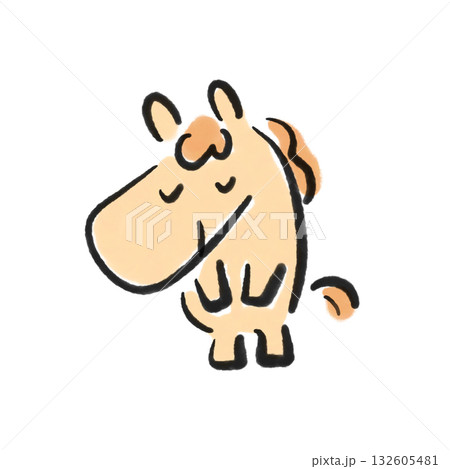ゆるい手描きの馬のお辞儀イラスト文字入り
