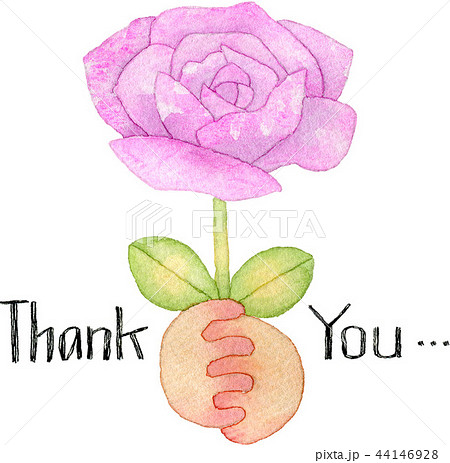 【母の日・父の日・記念日】バラの花を持つ手の水彩イラスト(Thankyou手書き文字付き)