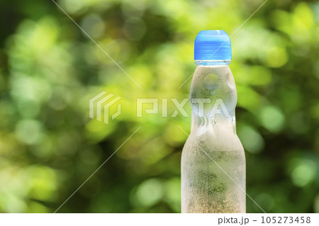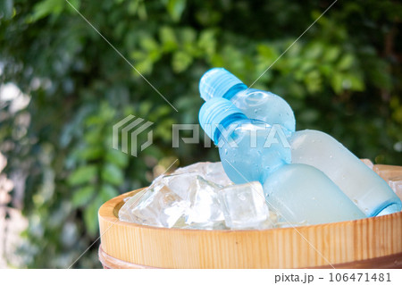 水滴が付いた冷えた瓶ラムネ / 夏休み・昭和レトロ・日本の夏の風物詩イメージ