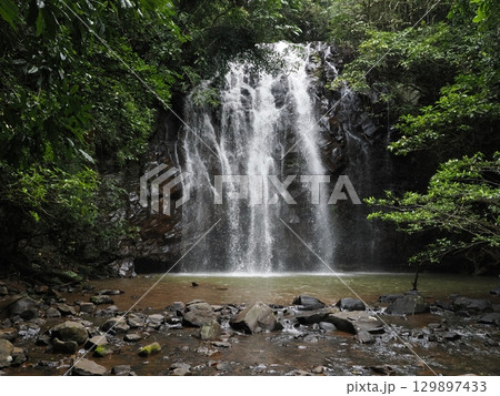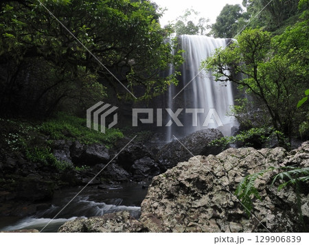 岩を滑る白の絹―Ellinjaa Fallsの正面