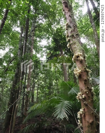 森の幹に宿る白の光―Ellinjaa Fallsへの道のSyzygium