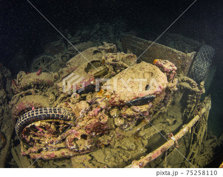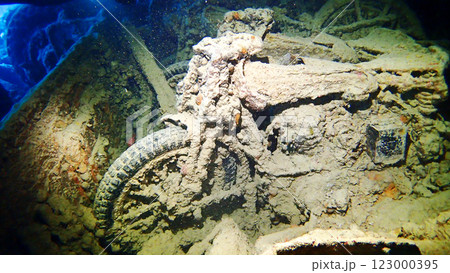第二次世界大戦の沈船内に残るバイク (シャルムエルシェイク、紅海、エジプト)