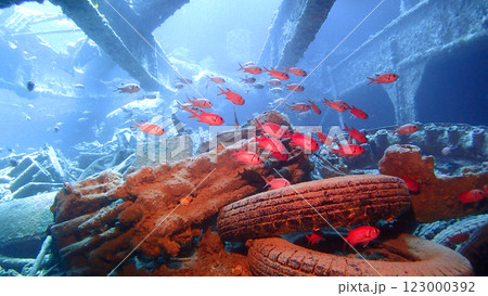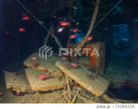 第二次世界大戦の沈船内に棲むアカマツカサ (シャルムエルシェイク、紅海、エジプト)