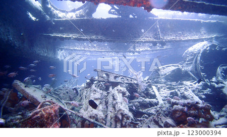 第二次世界大戦の沈船内部 (シャルムエルシェイク、紅海、エジプト)