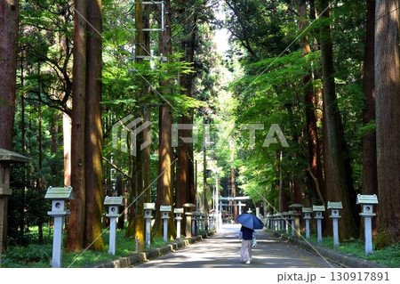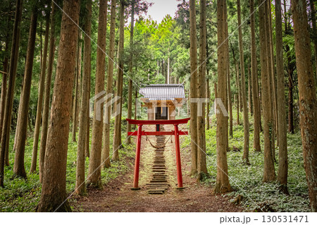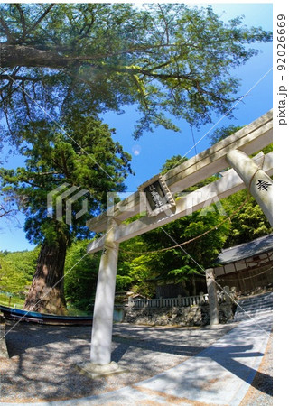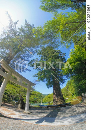 伊香具神社境内の針葉樹と鳥居 滋賀県長浜市木之本町大音