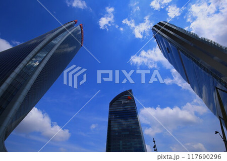 イタリア ミラノ シティー・リフェパークから高層ビルを見上げる