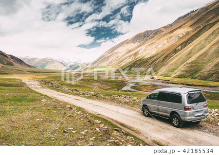 SUV Car On Off Road In Spring Mountains Landscape In Truso Gorge