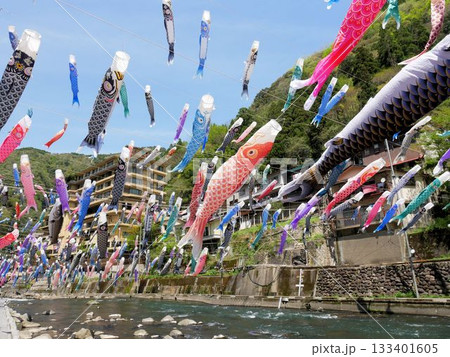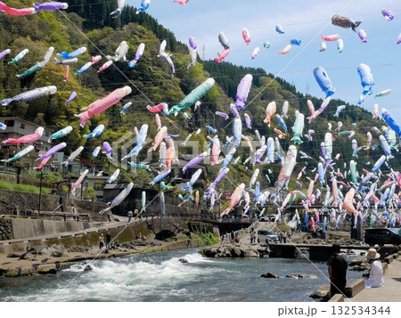 熊本県杖立温泉 鯉のぼりまつりの風景