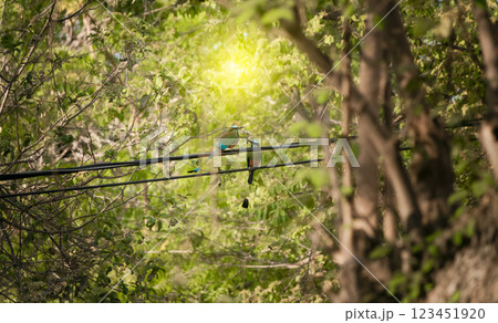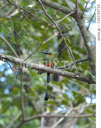 Guardabarranco birds on a branch, National bird of Nicaragua on a branch, Guardabarrancos on a branch, momotidae bird