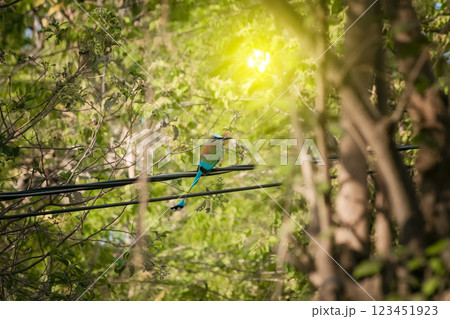 Green turqouise color tropical bird