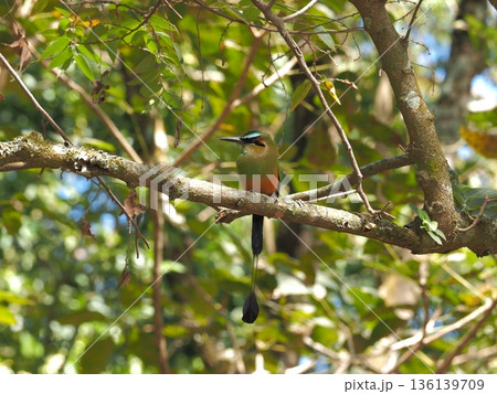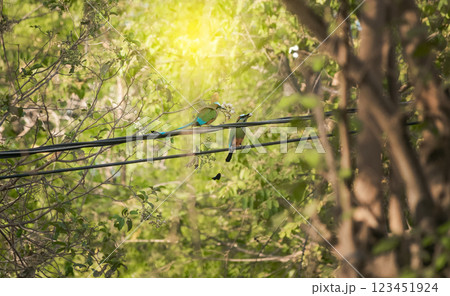 Two Guardabarrancos birds in the trees, National bird of Nicaragua on a branch, Two Guardabarrancos on a branch, Central American national bird
