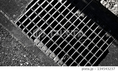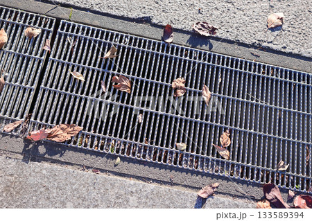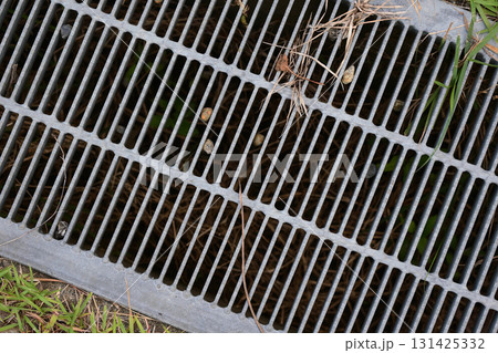 側溝のグレーチングに積もる雪
