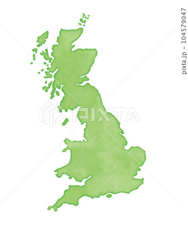 イギリス地図 手描き 水彩タッチ 緑