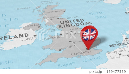 United Kingdom, London - location pin with national flag on political map - 3D illustration
