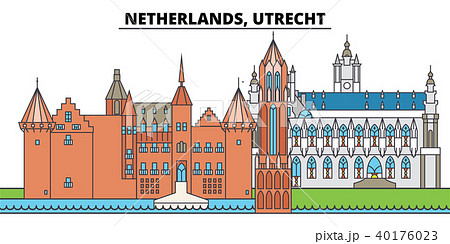 Netherlands, Utrecht flat landmarks vector illustration. Netherlands, Utrecht line city with famous