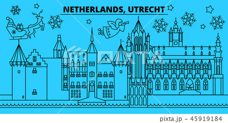 Netherlands, Utrecht winter holidays skyline. Merry Christmas, Happy New Year decorated banner with