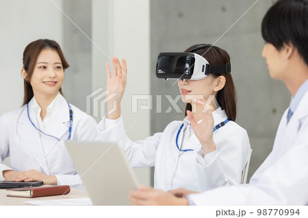VRゴーグルを使う医療従事者 シミュレーション