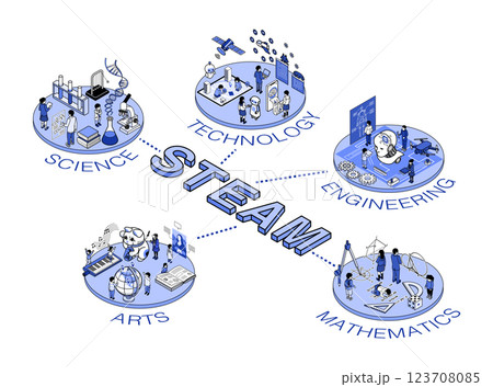 STEAM教育を表すシンプルで明るいタイトルデザイン 科学・技術・工学・芸術・数学の学びのシンボル