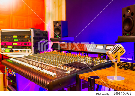 microphone in sound studio. recording concept, music production background