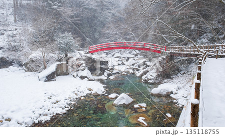 栃木県日光市 冬の雪積る鬼怒川温泉と鬼怒川