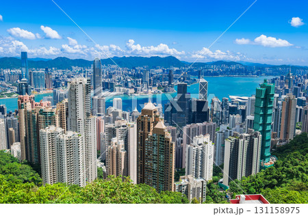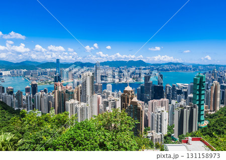 Hong Kong financial district skyline in a beautiful day from Victoria peak
