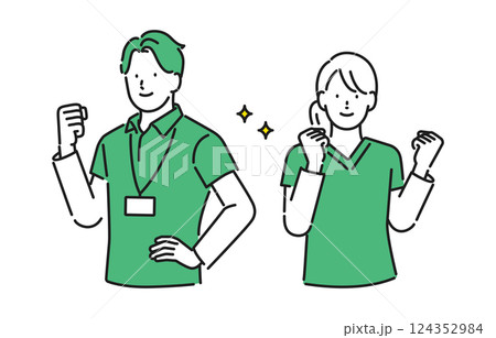 イラスト素材【介護イメージ】:生き生きとした表情でやる気のある若い男女の介護職員
