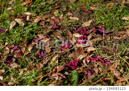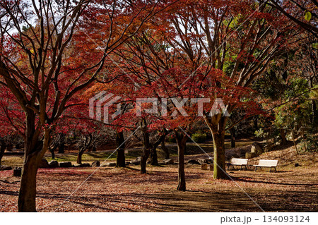 公園の立ち木と紅葉