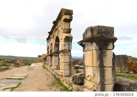 riumphal arch in roman town Volubilis, Morocco