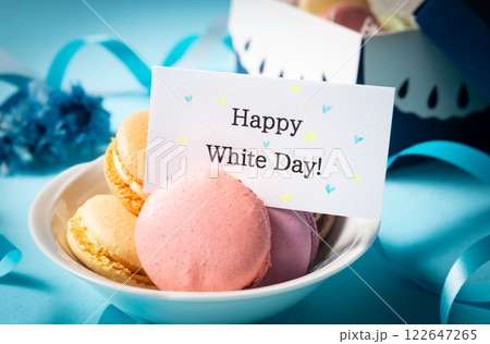 Happy White Day!のメッセージカード ホワイトデー マカロン 洋菓子 マシュマロ