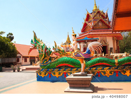 Statues of snakes-nagas and Pavilion in Pulau Tikus, thai Buddhist temple (Wat Chayamangkalaram), famous tourist attraction in Georgetown, Penang island, Malaysia