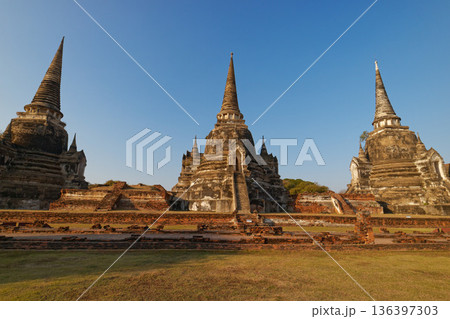 タイの世界文化遺産の古都アユタヤ 3基並ぶ仏塔がシンボルのワットプラシーサンペット寺院