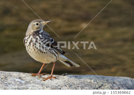 川辺の岩に立つタヒバリ