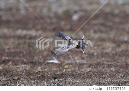 狩りのために飛翔する美しいチョウゲンボウ(ハヤブサ科)とカワラヒワ、タヒバリ他。 日本国神奈川県平