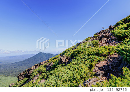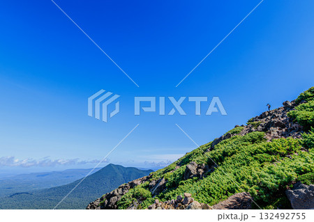 雌阿寒岳の頂を目指して ― 果てしない青空の下で