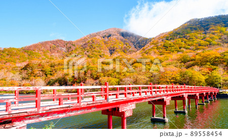 赤城大沼 湖畔 啄木鳥橋 地蔵岳 初夏の風景