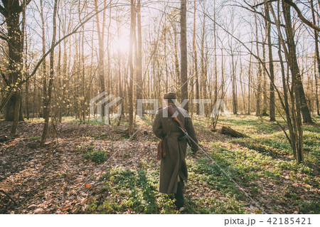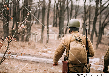 Re-enactor Dressed As Russian Soviet Infantry Red Army Soldier Of World War II