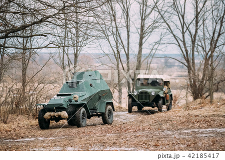 Russian Armored Soviet Scout Car BA-64 Of World War II And Truck