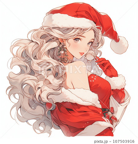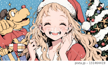 クリスマスにサンタの赤い衣装を着た女の子 AI画像